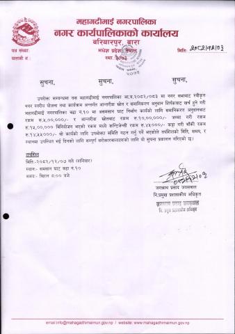 मितिः२०७५।०३|३२ गते योजना छनोट बजेट सिलिङ्ग वडाहरुमा पठाइएको छ।